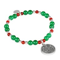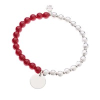 Collar hecho a mano en plata 925 con dije en cristal ruby y pequeña placa circular.