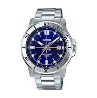 LOS RELOJES CASIO OFRECEN LA CALIDAD QUE TE MERECES. EL SECRETO DE UN GRAN ESTILO ES SENTIRTE CÓMODO CON EL ACCESORIO QUE USES. ESPECIFICACIONES CORREA INCLUYE Modelo para hombre Resistencia al Agua (metros) : 100 Tipo de Cristal : Flame fusion Cronógrafo : Calendario : Sí Forma circular Material del la Correa : Acero Inoxidable Color de la Correa : Plateado Largo de la Correa (mm) : 210.5 Tamaño de la Correa (mm) : 32 Tipo de Hebilla : Hebilla Estuche marca casio (Imagen referencial) Publicitarios de la marca CAJA MOVIMIENTO Color del Tablero : Azul Material del Tablero : Metal Tamaño Caja (mm) : 50 Tono de la Caja : Azul Material de la Caja : Acero inoxidable Tipo de Corona : Empujar Tipo de Piedra : Color Luminoso: Blanco Tipo de Movimiento: Cuarzo Hecho en Suiza : No Componentes de Movimiento: Japón Vendedor Movimiento : Tmi Calibre Movimiento : Vh63